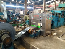 2007年公司通過引進國外先進的靜電涂裝技術,結合國內各類中小型金屬板(帶、絲)冷軋機組的實際應用情況,成功的研發出XCTZ-3型系列金屬板(帶)冷軋靜電涂油機、XCTZ-H101焊絲靜電涂油機、XCTZ-D刀帶靜電涂油機,其高壓力微流量雙流體霧化靜電涂油技術已在國內處于領先地位.每平米0.3克(單面)的涂油量已在實際應用中得到滿意的效果.